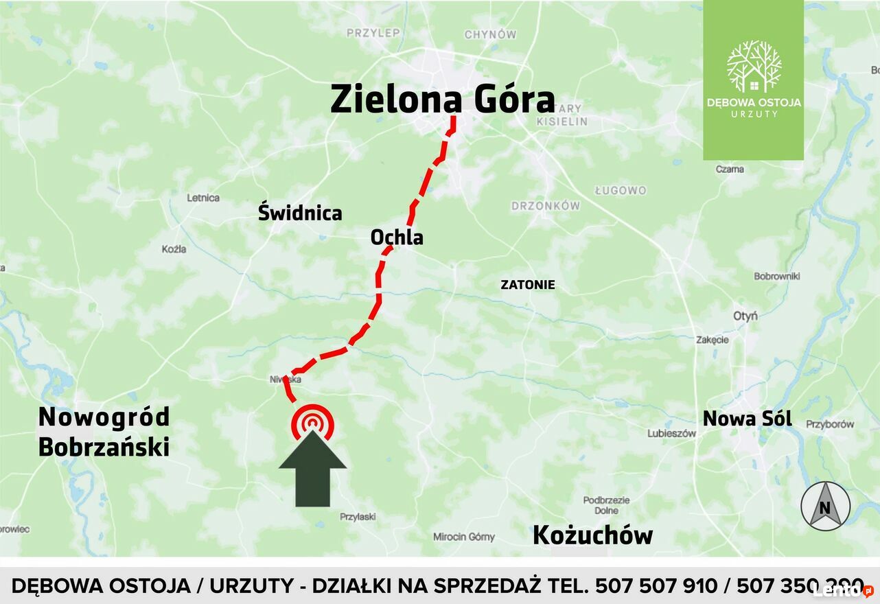 Działki znajdują się zaledwie kilkanaście km od centrum Zielonej Góry, wiodącego miasta uniwersyteckiego z bardzo dobrze rozwiniętą infrastrukturą miejską, w której znajdują się między innymi ośrodki kultury: Muzeum Lubuskie, Teatr Lubuski, Filharmonia, Amfiteatr, atrakcje dla każdego m.in.: Centrum Rekreacji i Sportu, Palmiarnia, czy deptak.